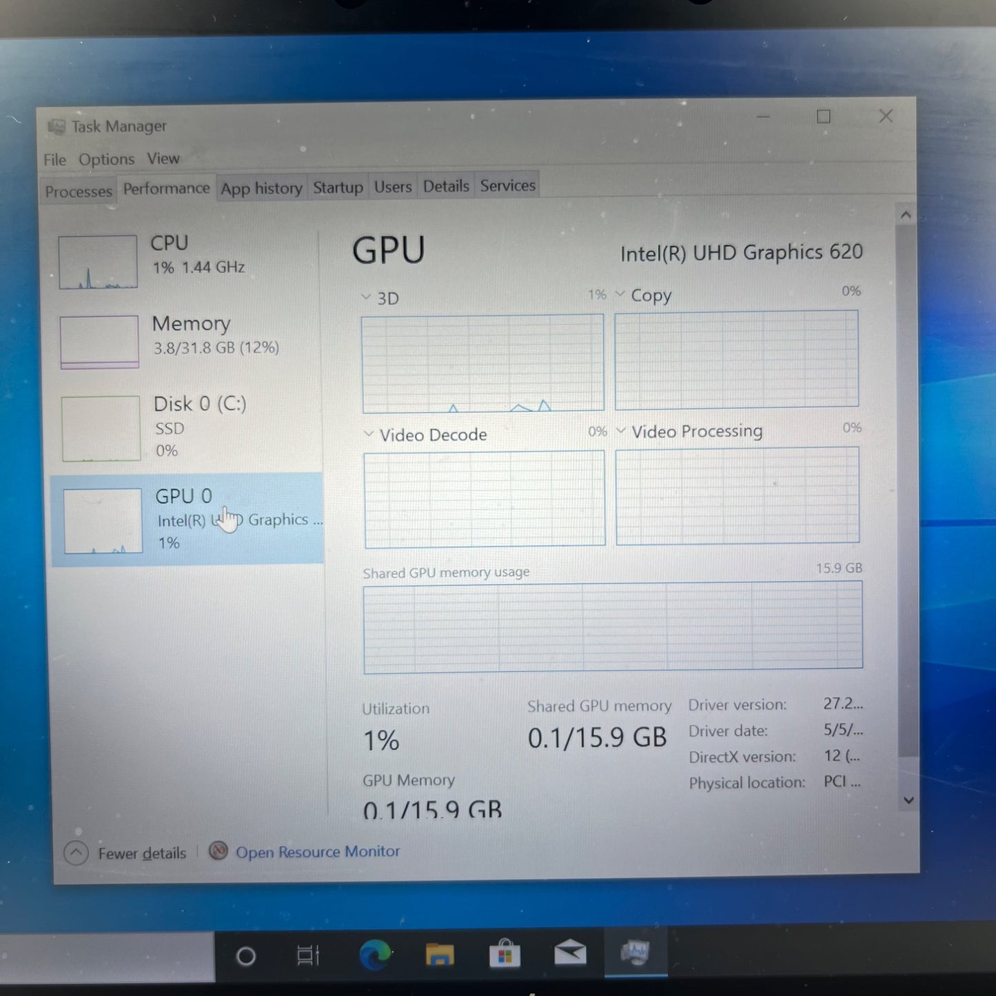 Integrated Graphics | Intel UHD Graphics 620